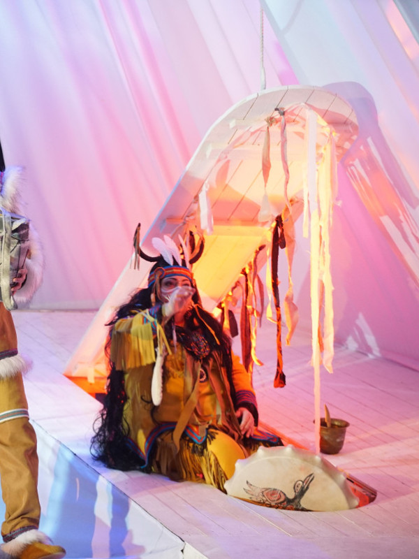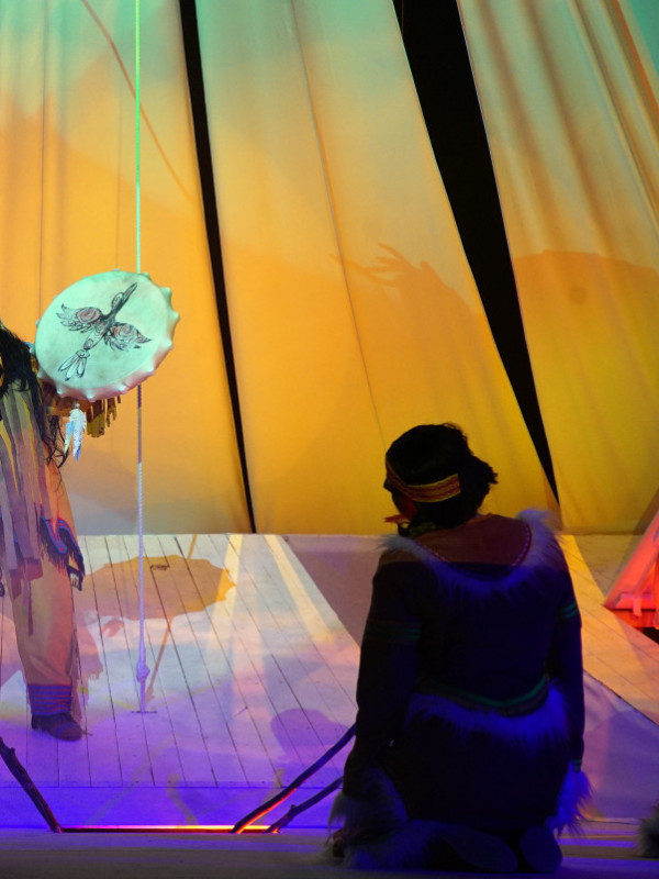 Атмосфера спектакля, то магическая и страшная, то просветлённая и трепетная, создаётся впечатляющей сценографией, выразительной и оригинальной мелодикой, острыми ритмами, мастерскими стилизациями индейских песен и шаманских обрядов.