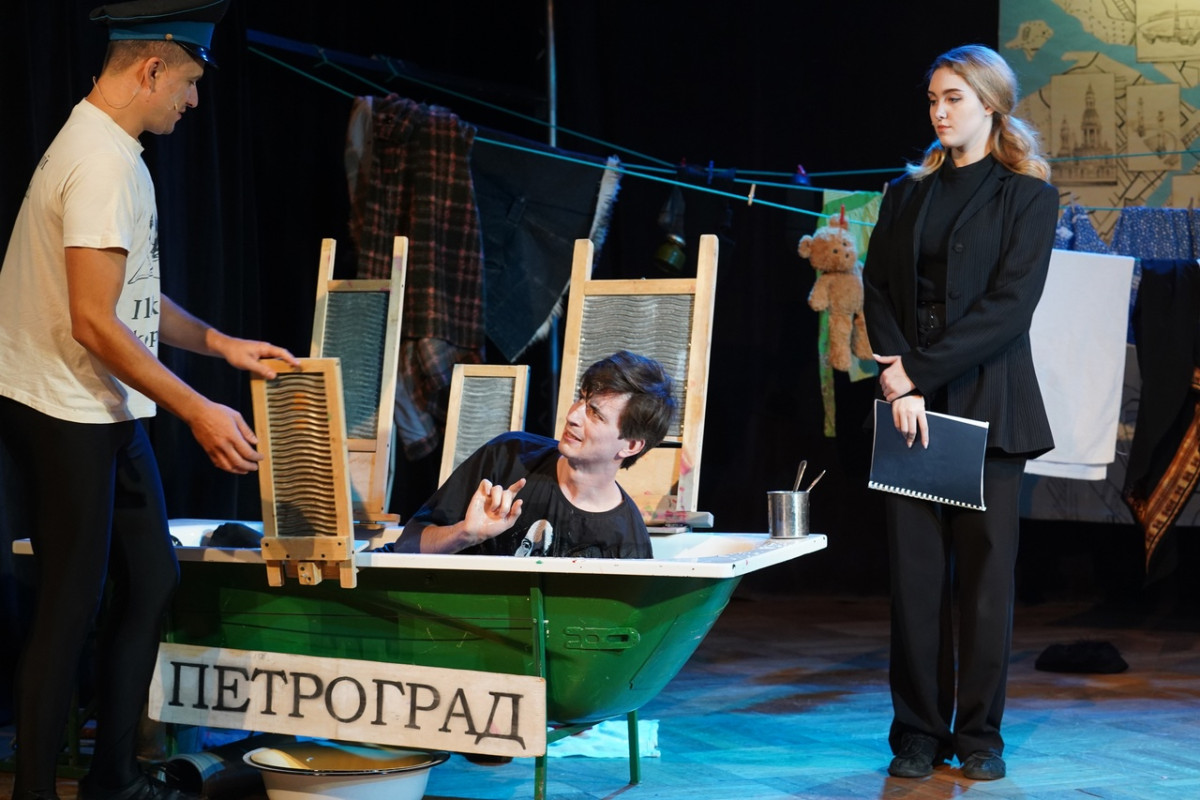 «Крокодил» — спектакль-импровизация. Молодые артисты сочиняют его на глазах у зрителей и вместе со зрителями. Оказывается, для того чтобы сыграть множество персонажей, описанных Чуковским, вполне хватит двух актёров, ванны, лестницы-стремянки и противопожарного ящика с песком. И когда эти актёры превращаются в Неву, в Африку, в тачанку, в аэроплан, в самых разных зверей и даже в персонажей пьес Шекспира, даже самые маленькие дети верят, что в театре возможно всё!