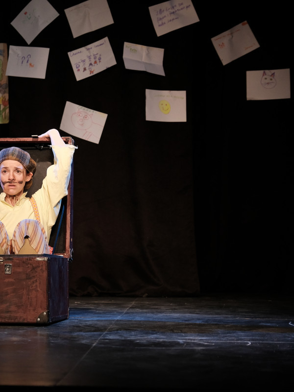 Спектакль «Откуда берутся дети?» — попытка взрослого, который возвращается домой из лагеря смерти «Маутхаузен», «прыгнуть» в свое детство и даже примерить на себя роль собственного отца, влезть в его шкуру. От самого отца не осталось ничего, кроме воспоминаний и... нелепого чемодана, набитого всякой всячиной. Оказывается, в этом чемодане помещается целая вселенная!.. С его помощью можно путешествовать в космосе, тушить пожары, побеждать чудовищ и даже найти счастье, если очень хорошо его поискать. Два молодых артиста (Ирина Кривчёнок и Кирилл Павлов) создают на сцене многомерный и многоликий мир — мир игры и настоящей жизни.