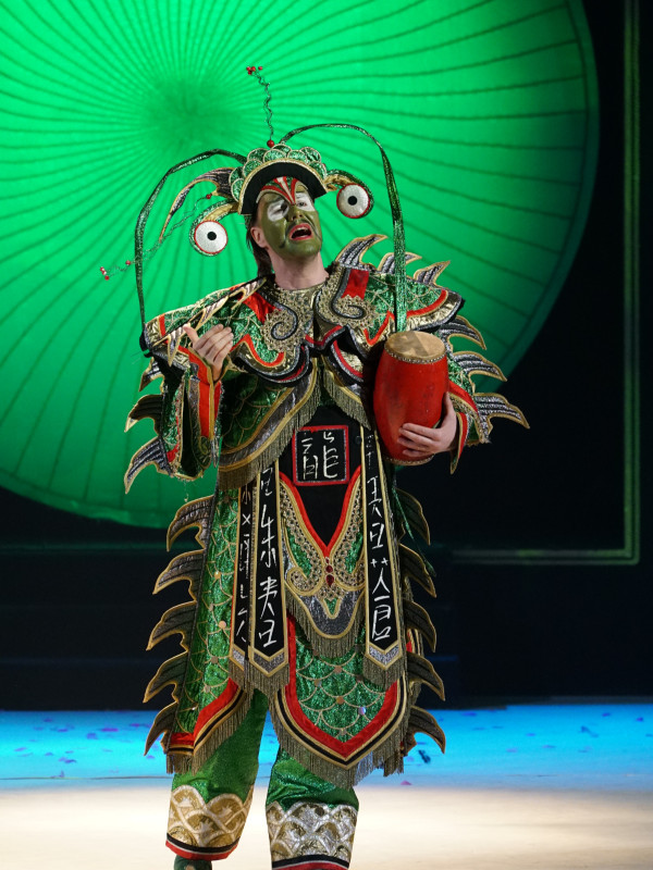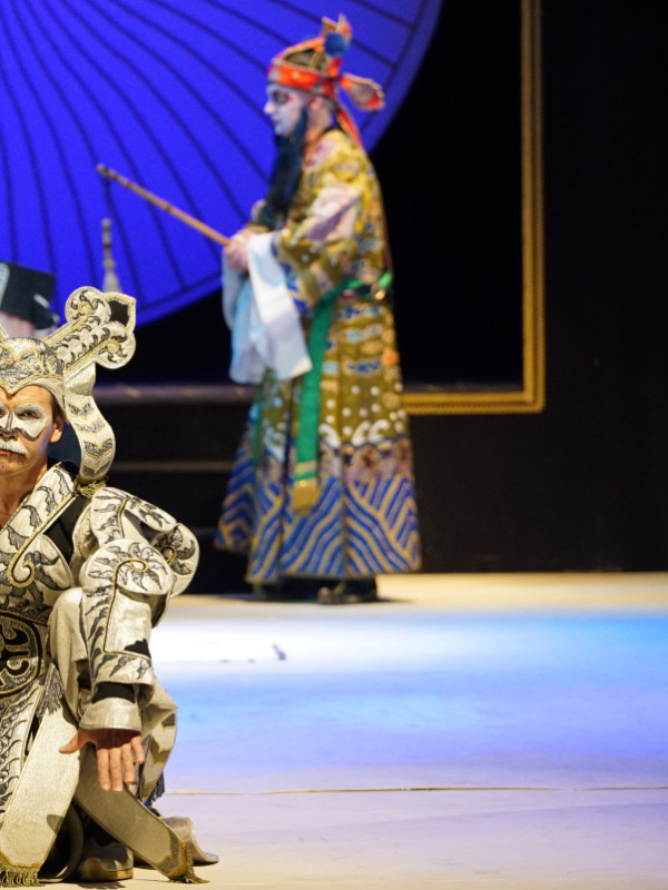 Спектакль завораживает магической атмосферой восточного ритуального действа, пряным, таинственным звучанием китайских ударных и духовых инструментов (оригинальная музыка в китайском стиле написана специально для этого спектакля). Экзотичные, изумительной красоты костюмы с затейливым шитьём, причудливыми аппликациями и золотыми узорами, гримы, превращающие лица в маски, эффектные, в восточном духе, декорации, фантастические головные уборы, оживающие китайские драконы, плывущие на шестах над зрительным залом — всё это пышное торжество роскошного сказочного востока поразит любого, даже самого искушенного зрителя.
