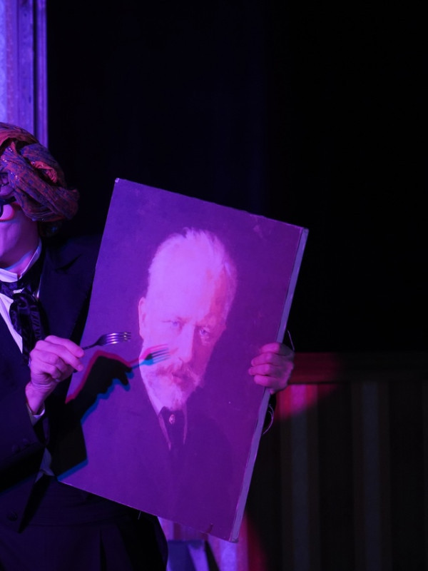 Сказка поставлена очень камерно, под рояль — в духе домашнего спектакля. Домашние представления в России вплоть до начала XX века были частью повседневной жизни. Их с удовольствием и трепетом вспоминали в своих мемуарах и автобиографиях выдающиеся представители русской культуры. И дом Чайковского в Клину наверняка был «сценой» для какого-нибудь импровизированного спектакля. Известно, что Петр Ильич Чайковский в юности с большим удовольствием участвовал в домашних любительских спектаклях. Может быть, юношеское увлечение сценой затем побудило композитора всерьёз обратиться к театру — опере и балету. Кстати, именно музыка балета Чайковского «Спящая красавица» стала музыкальной основой спектакля. Возможно, для маленьких зрителей «Спящая красавица» окажется не только первым знакомством с театром, но и открытием великой музыки П. И. Чайковского. В постановке «Зазеркалья» в переложении для рояля прозвучат наиболее известные музыкальные фрагменты знаменитого балета.