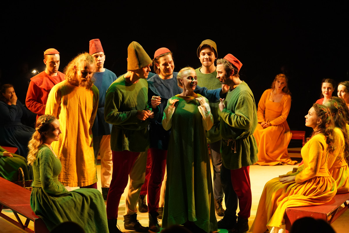 В театральном действе «Зазеркалья» литературный шедевр Дж. Боккаччо неожиданно соединился с гениальными мадригалами К. Монтеверди. Как истинный художник Ренессанса, Монтеверди «отстаивал права чувств и свободы в музыке» (Р. Роллан). Его мадригалы посвящены жизни, человеку, его переживаниям и страстям. И, конечно, они о любви!