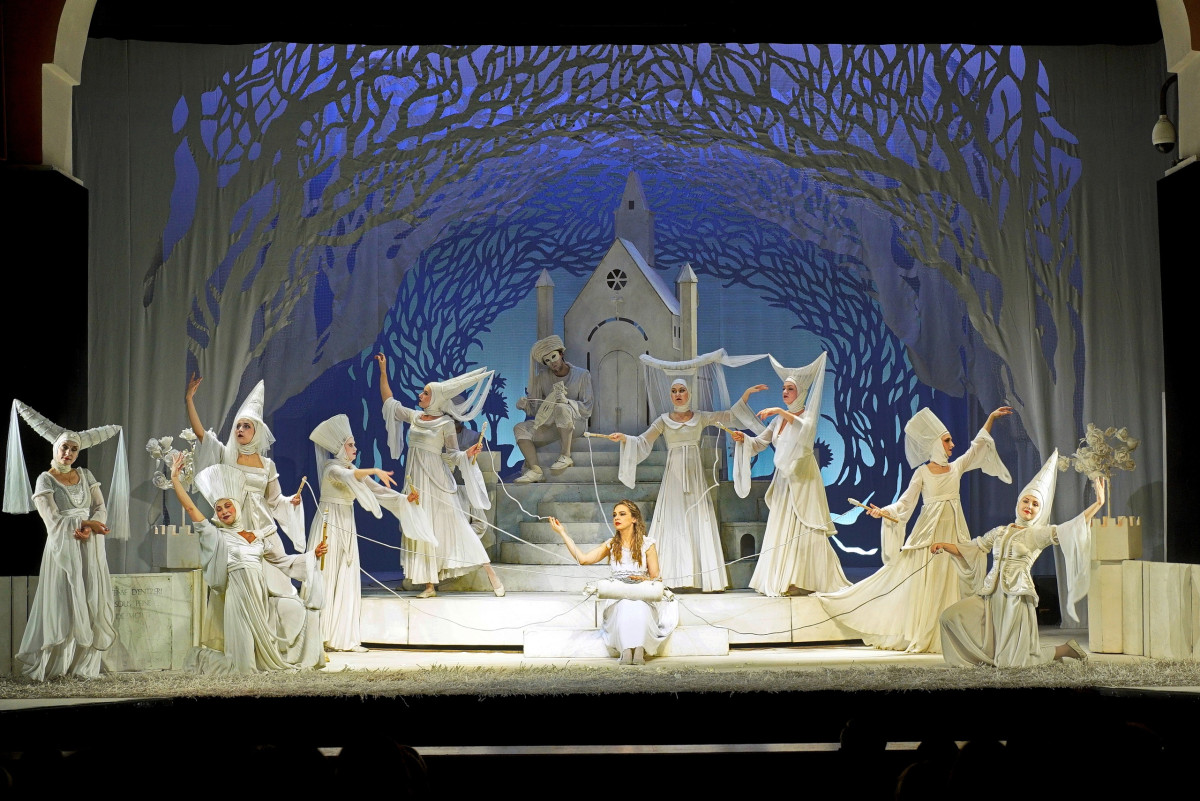 И на этот раз публике будет представлена «Иоланта» особенная, не похожая ни на одну из перечисленных постановок, в сценографии и с костюмами Елены Орловой, художницы лучших спектаклей «Зазеркалья» последних лет (россиниевских опер «Золушка» и «Итальянка в Алжире», моцартовской «Так поступают все» и других).