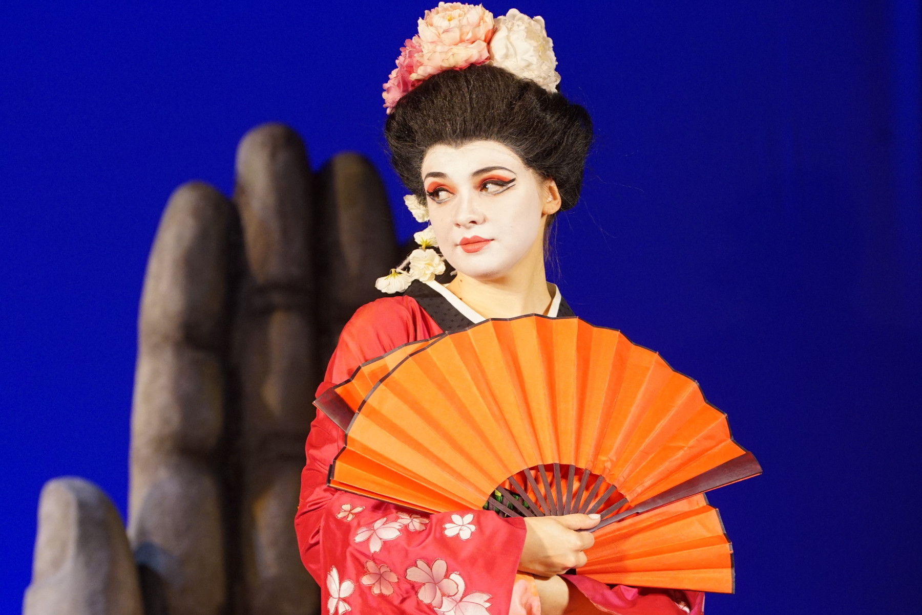 «Мадам Баттерфляй» в «Зазеркалье» — спектакль не только экзотично-красочный, но и удивительно гармоничный, эмоциональный и изысканно тонкий. Открытая страстность музыки Пуччини переплавлена в энергию сильнейшего внутреннего переживания, ярких контрастов, роскошных красок.