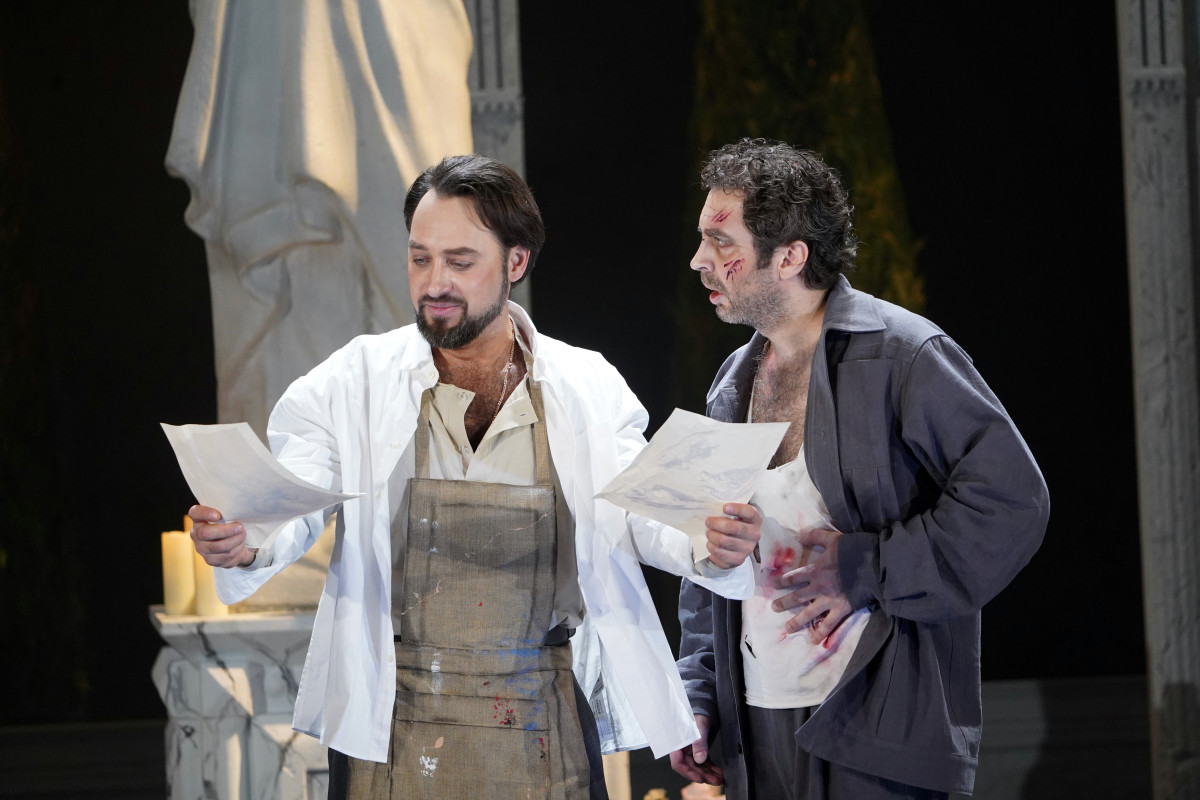 По замыслу постановщиков действие оперы перенесено в середину ХХ столетия. Для Александра Петрова основания для такого решения лежат в самой партитуре «Тоски», о чём и рассуждает режиссёр: