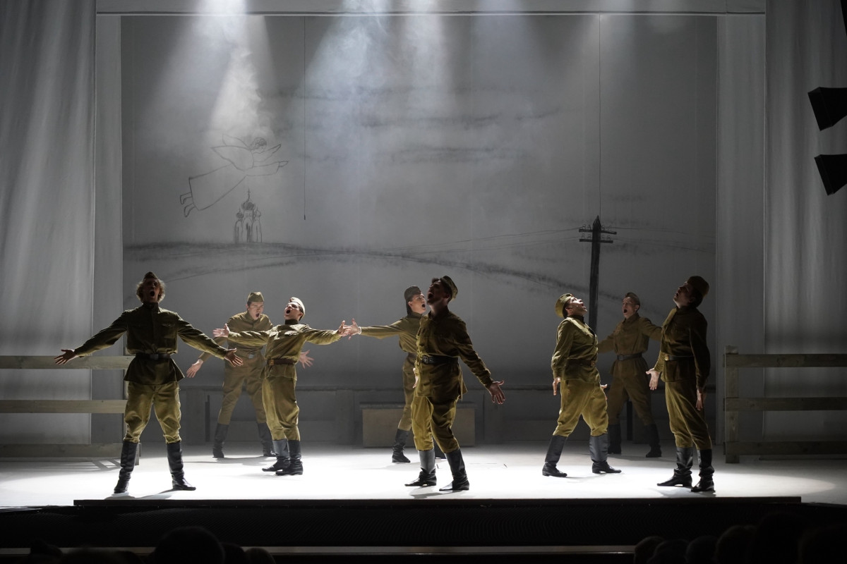 7, 8 мая и 22 июня в 7 часов вечера будет представлен спектакль-посвящение «Военные письма». Он создан по знаменитой вокально-симфонической поэме Валерия Гаврилина на слова Альбины Шульгиной. В него также вошли фрагменты хоровой симфонии-действа «Перезвоны» — вершины творчества композитора.